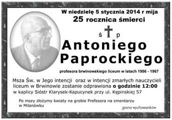 Antoniego Paprockiego w 25 rocznicę śmierci
